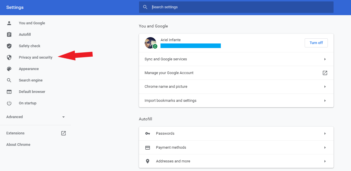 On your computer, open Chrome (please do not have the Multiplying Good website up). At the top right, click the 3 vertical dots button, and go to Settings. Click "Privacy and security" on the left-hand side. Click “Cookies and ...