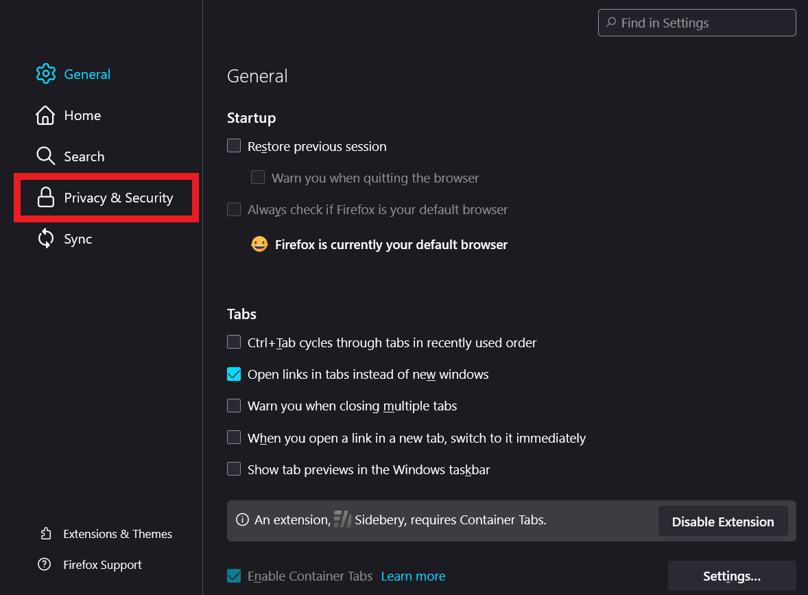 3. On the left-hand side, click "Privacy & Security”.