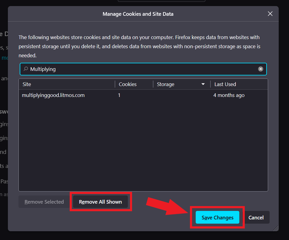 If you want to Delete a specific cookie type the website of the cookie you want to delete. In this case, you can type “MultiplyingGood” and all cookies associated with